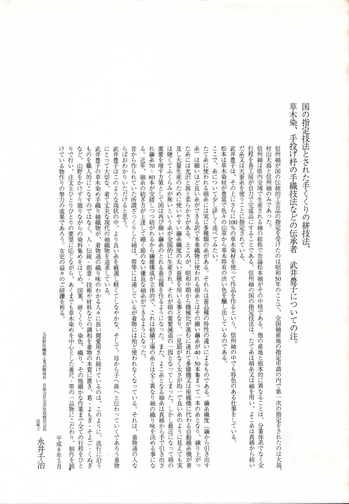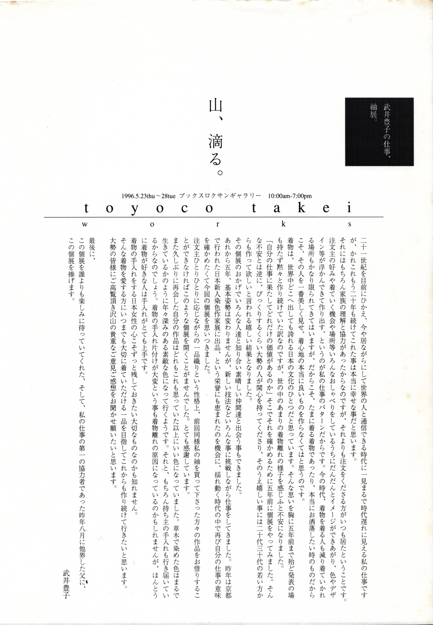 1996年に開催した武井豊子の仕事展「山、滴る。」