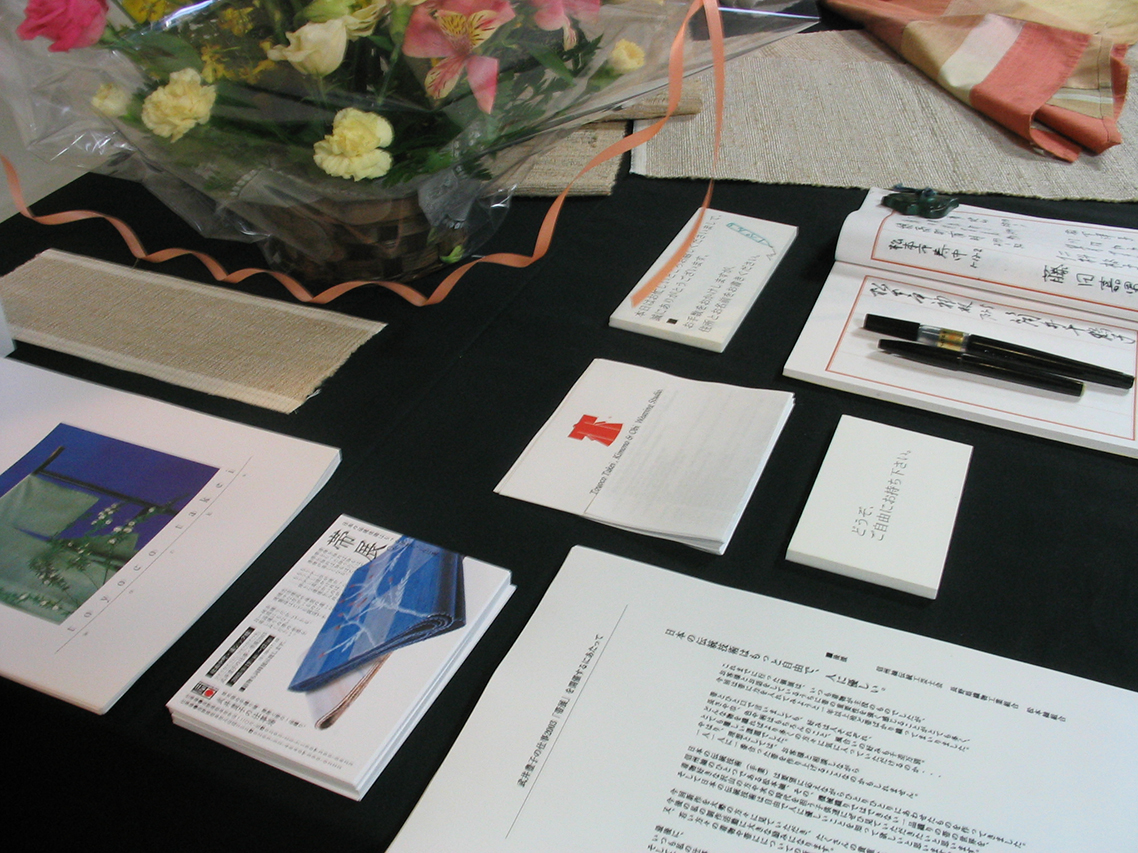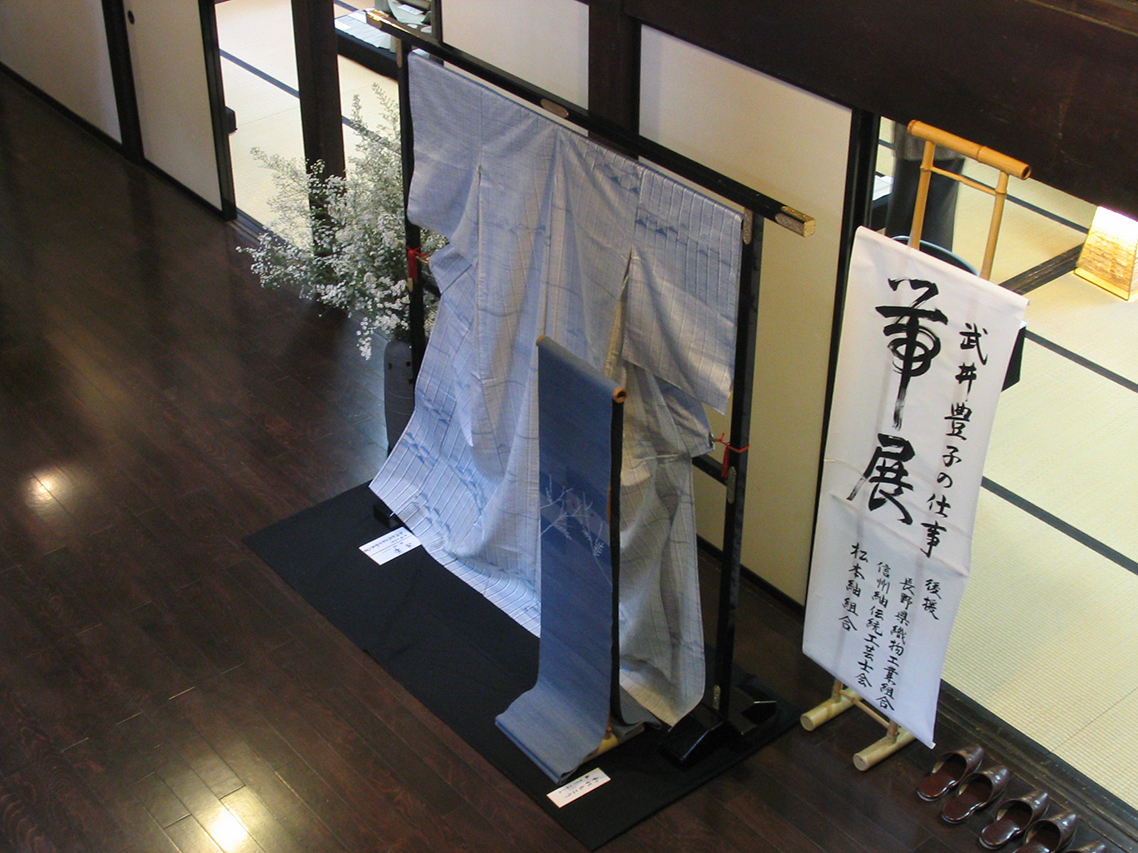 御礼 先日の仕事展「帯展」に際しまして、ご多忙中にも拘わりませずお越しいただき、誠に有難うございました。厚く御礼申し上げます。 沢山の方々から頂きましたとても貴重な数々のお言葉を励みにして、精進を重ね、幾時代を経ても愛される着物の一品織りを織り続ける覚悟です。 今後とも皆様のご指導の程、宜しくお願い申し上げます。 遅れましたが、皆様のご多幸をお祈り申し上げ、お礼の書状にかえさせていただきます。 2003年10月 武井豊子