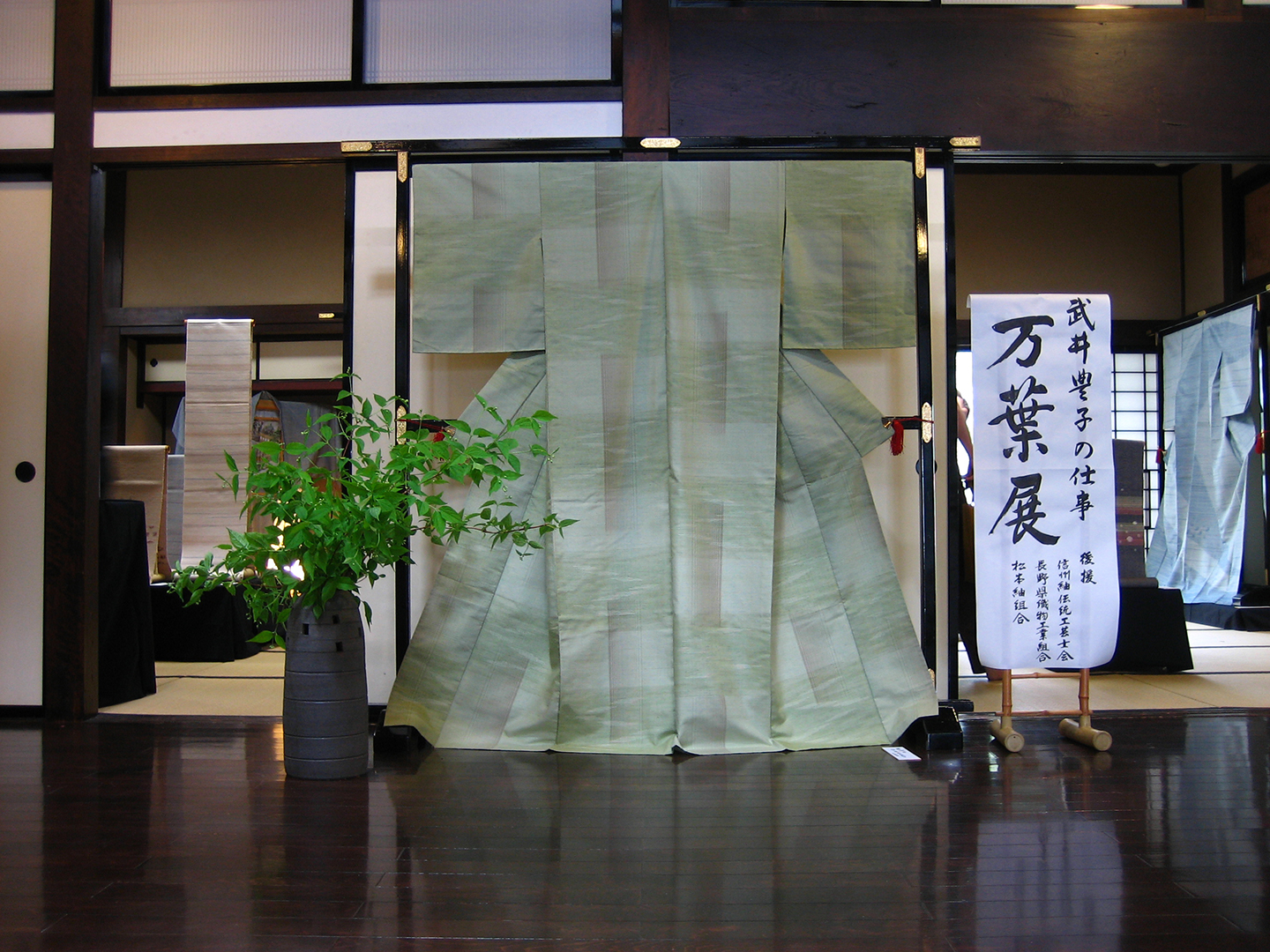 新聞紙上やテレビでも、草木染め教室が開催されたという、各地域での世代を越えた取り組み等がたくさん報道されており、それだけ人々は草木染めに興味を持ち、もっと知りたいと考えている人がたくさんいるということを知り嬉しくなりました。この個展によって、学校の授業や、地域の公民館活動等で行われた「草木染め」に興味を持ってくれた人たちに、 もう一歩踏み込んだ先にある、草木染めで織られた美しい松本の伝統技術である松本紬(信州紬)と着物文化を伝え、地域文化に少しでも貢献したいと思います。
