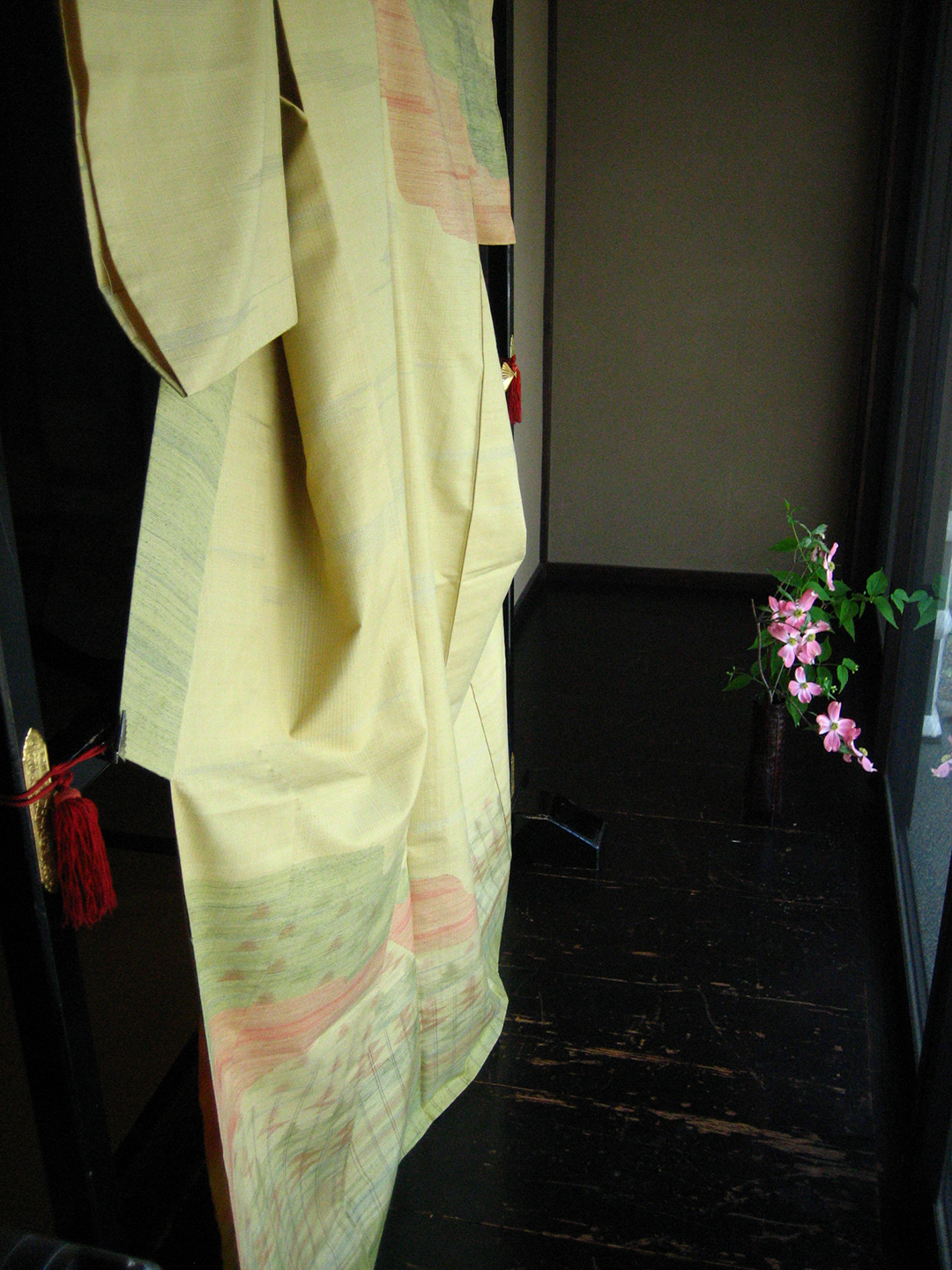 今回の展示では自然や共鳴する様々な心をテーマに新作を含めた訪問着、着尺、八寸帯、半巾帯、その他の和装小物等をご覧頂くことができます。近年ではパーティやお茶会等でも従来の染めの着物に引けをとらない紬を見かけることが増えました。着崩れせず丈夫で奥深い光沢がある紬は、一昔前まで普段着とされていたものからよりフォーマルな用途へと広がってきました。特に松本紬(信州紬)のデザインの独創性は着物通の方々にとても人気のようです。