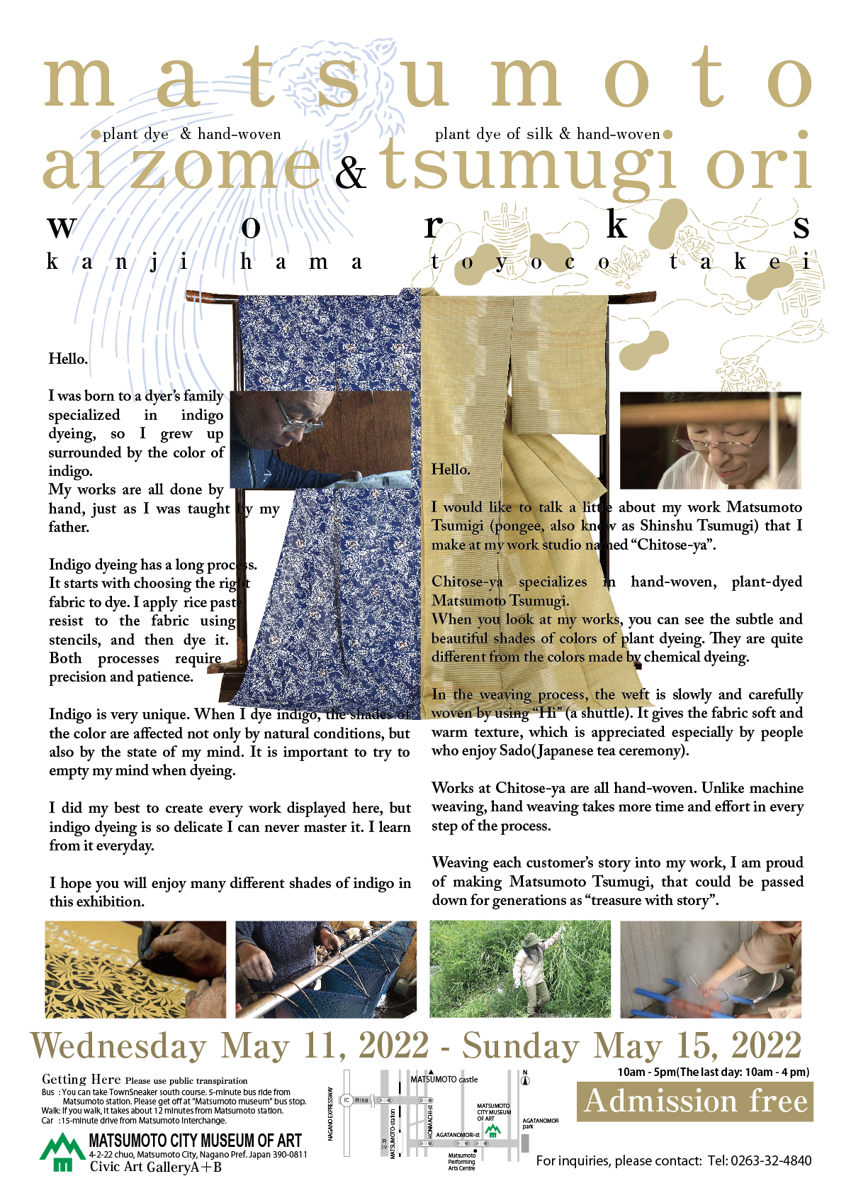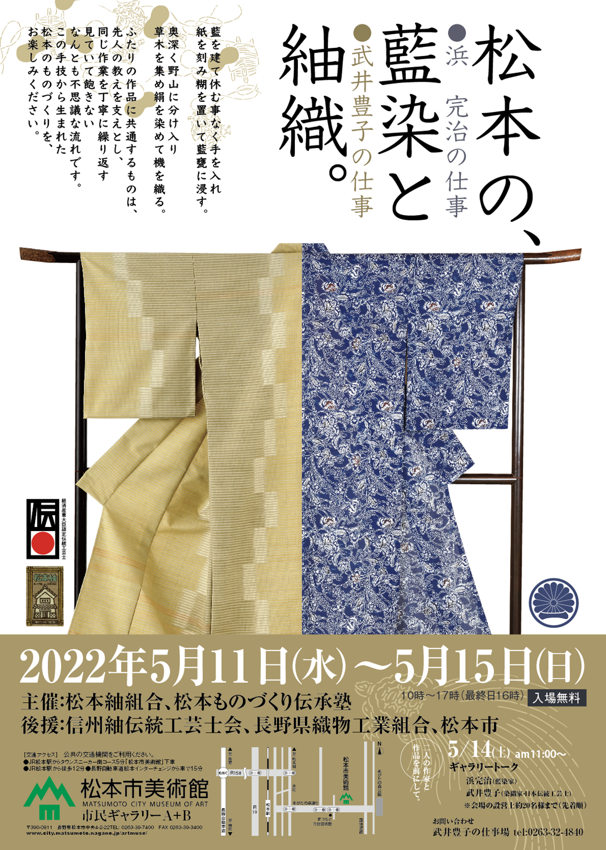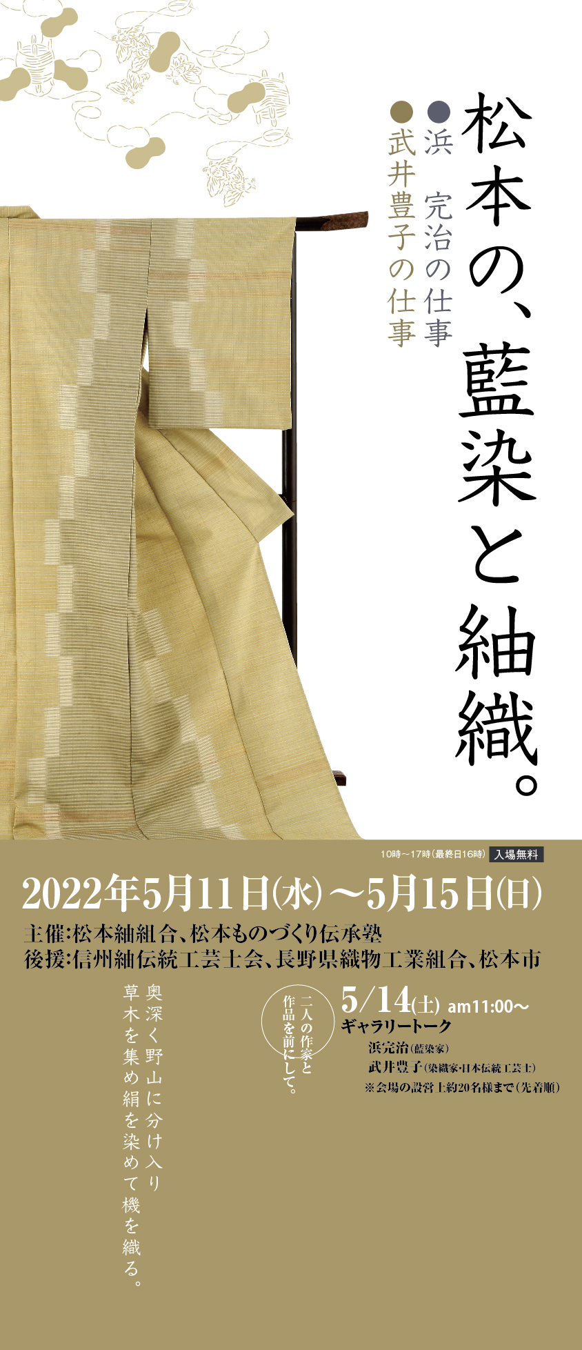 先日の仕事展「松本の、藍染と紬織。浜完治の仕事 武井豊子の仕事」に際しまして、ご多忙中にもかかわらずお越しいただき、またお祝いの言葉を頂きましてありがとうございました。