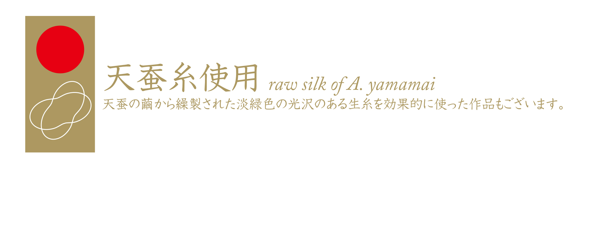 天蚕の繭から繰製された淡緑色の光沢のある生糸を効果的に使った作品もございます。
